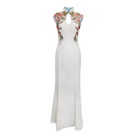 White cheongsam. Short sleeve cheongsam. White skirt. for you.