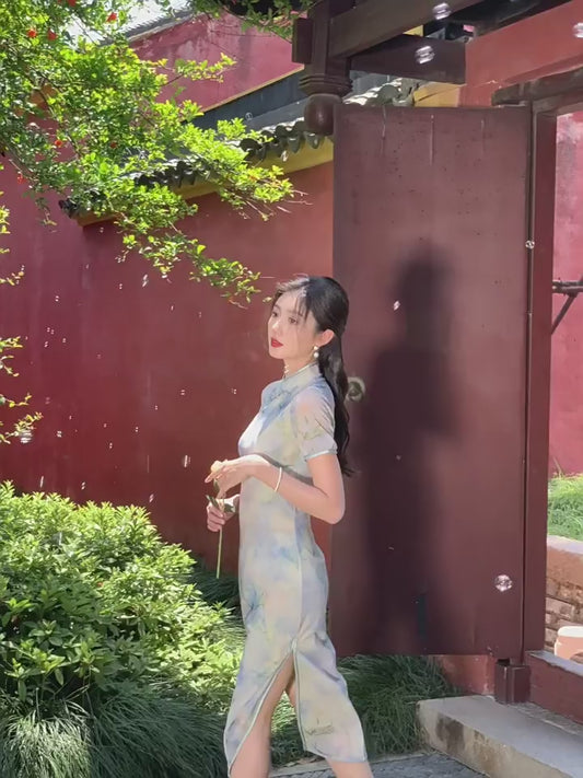 Cheongsam ink painting. Short sleeve cheongsam. Short skirt.
