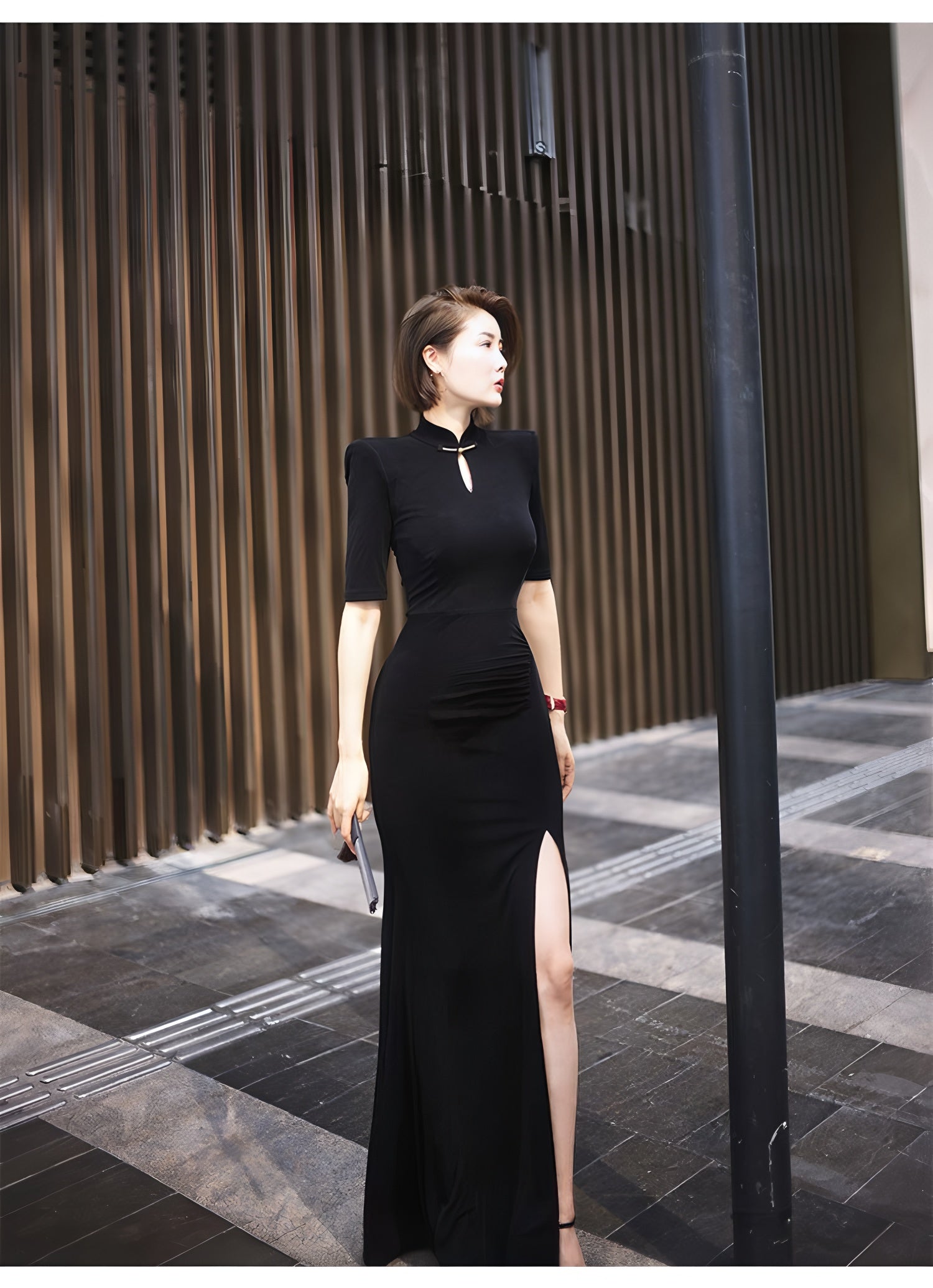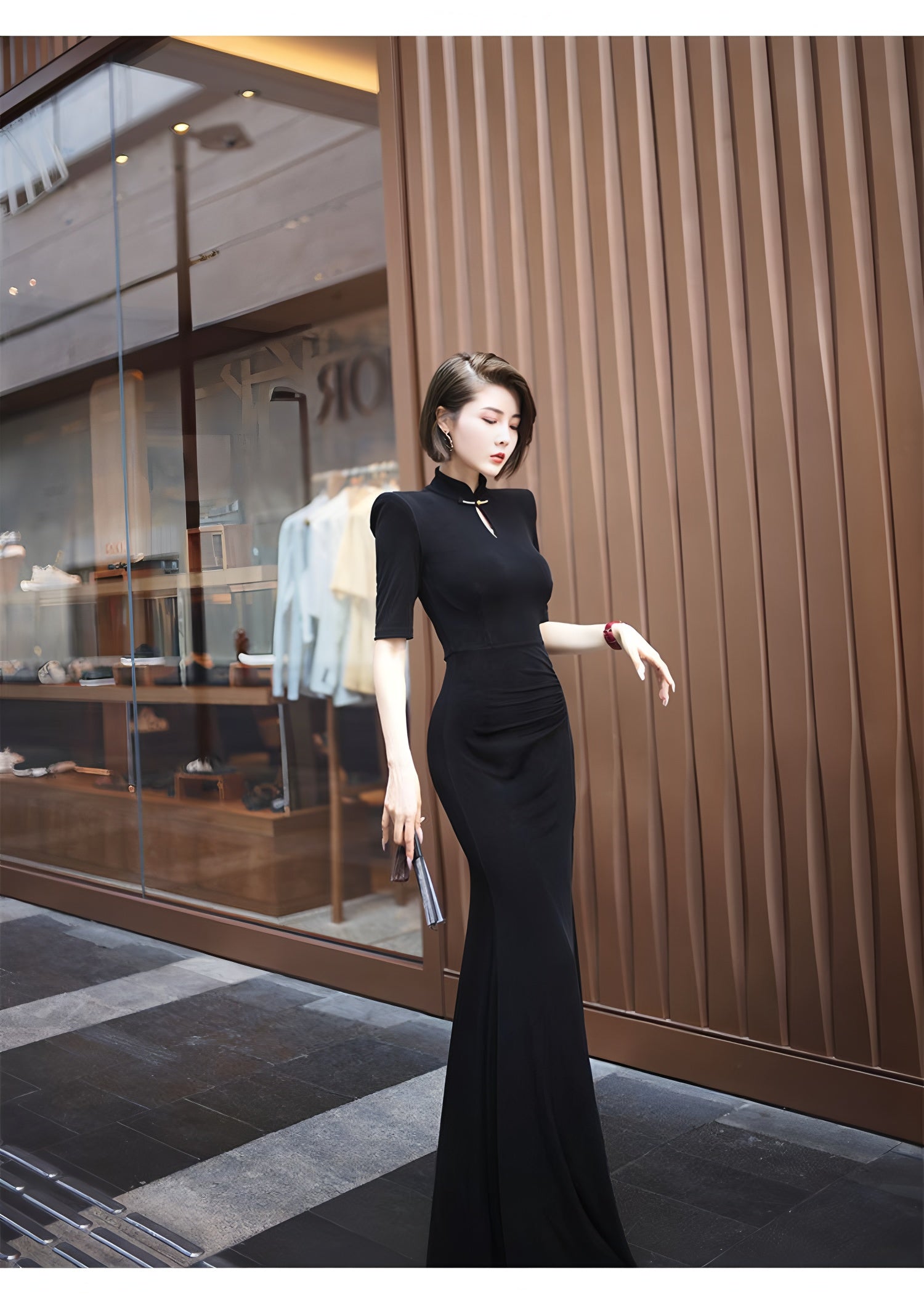 Waterdrop collar cheongsam with mid-length sleeves